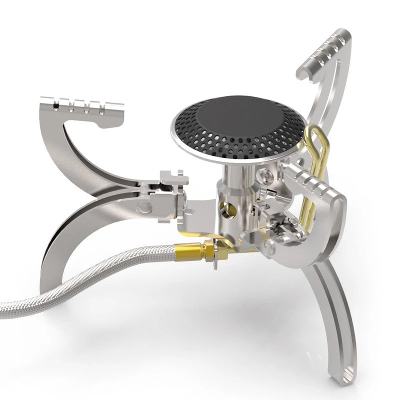 The NDūR Foldable Mini Stove is a free-standing portable and lightweight outdoor stove that has a bidirectional folding design that is easy to set-up and operate. It is made of stainless steel, aluminum, copper and has a strong flame, high thermal efficiency. This is perfect for camping, backpacking, picnics and more. Simply set it up, attached the hose to a propane canister and you are ready to go. Meets European CE safety standards.