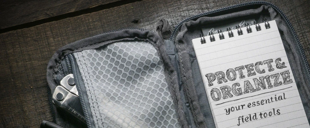 Don’t let its size fool you…this compact organizer holds a lot more than Just your notes.  Translucent storage pockets make it easy to organize your small field essentials: flash drive, small tool, flashlight, and more.