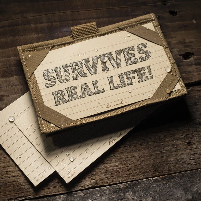 You’ve drafted your notes, now keep them on tap in your index card wallet.  Easily store or access your Index Cards and All-Weather Pen with this rugged wallet, featuring a secure hook and loop closure.  Besides securing your cards and pen, this weather resistant wallet also serves as an on-the-go writing surface.  Handy in any situation and tough enough to survive the elements, these index cards are ready to communicate at-a-glance.