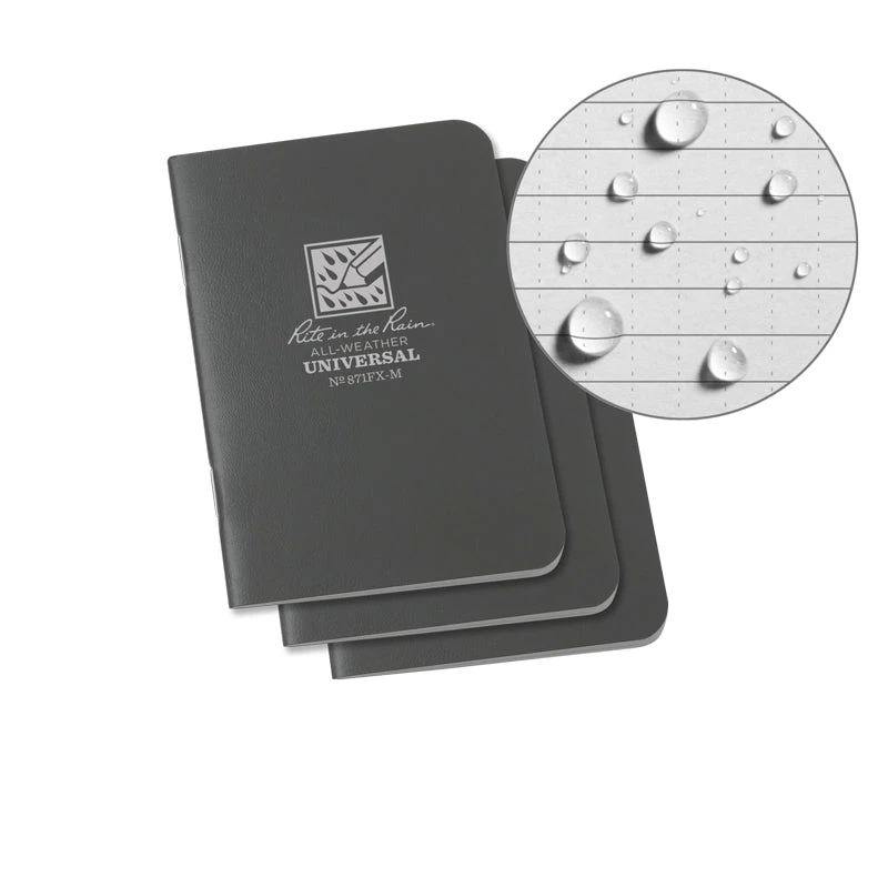 The rite in the rain staple-bound notebook is compact, flexible enough to slip into a pocket, and its durable cover defends against weather and wear.