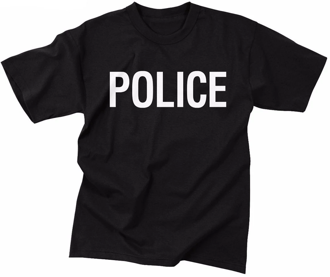 Rothco 2-Sided Police T-Shirt is constructed with a comfortable and durable poly cotton blend shirt. The Police T-Shirt features a black T-shirt with white lettering on both sides.