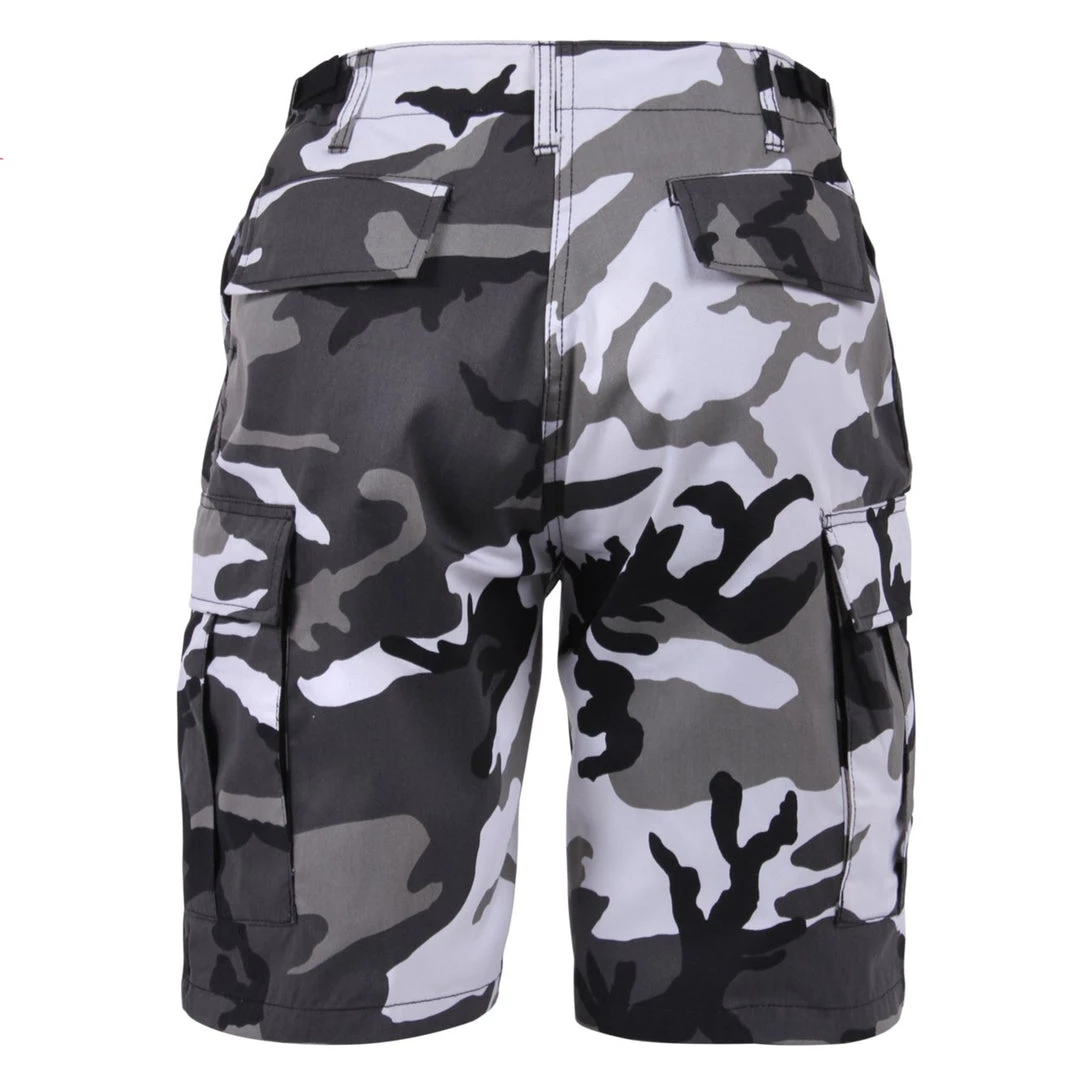Stand out in Rothco’s Colored Camo Tactical BDU (Battle Dress Uniform) Shorts; the combat-tested military shorts are available in various colored camouflage patterns including city camo, ultra violet camo, and black camo. In the street or in the field, the military cargo shorts feature a cotton / polyester blend to withstand wear and tear. Modeled after the U.S. military’s standard-issue Battle Dress Uniform, the camo shorts include six versatile pockets, including two large button-down pleated bellow side cargo pockets, two front slash pockets, and two rear button-down pockets. For your ideal fit and feel, the camouflage tactical shorts feature adjustable pull-tabs on the waist.