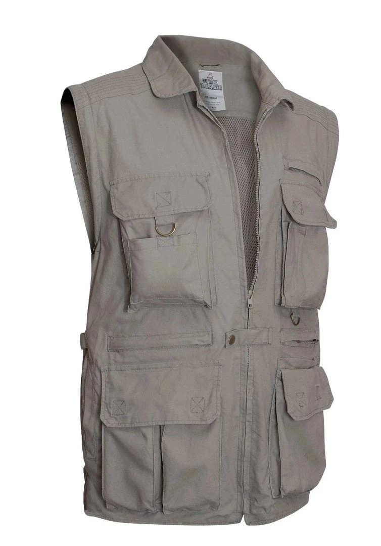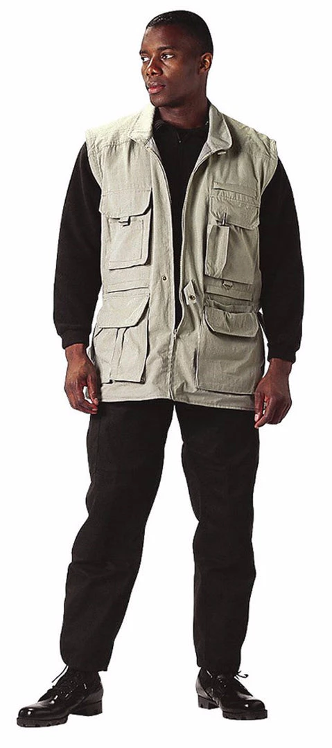 Eliminate the need for bags or pouches when traveling to your next destination with Rothco’s Convertible Safari Jacket. The convertible safari jacket can easily convert from a jacket into a travel vest with the zip-off sleeves, allowing you to adjust in different climates and seasons. Featuring 19 versatile pockets, the safari jacket offers plenty of room to store all your essential gear. The left zippered security chest pocket includes a utility lanyard to clip-on keys, a compass, or other supplies. Each hook and loop chest pocket features d-rings and smaller front pockets for storing pens and additional items. The zippered mid-torso security pockets can securely store your phone, wallet and other important gear. Store a notebook and/or a small camera in the three overlapping pockets located on the left waist. Three deep pockets on the right waist provide ample storage for gun magazines, a flashlight, flare, and other outdoor essentials. Conceal important items with the two slash pockets and two interior hook and loop pockets. The large hook and loop back pocket is great for storing maps, travel documents, and other vital paperwork. While wearing as a safari jacket, the sleeves feature elastic hook and loop wrist cuffs to cinch over a pair of gloves or adjust to your ideal fit. The vented back allows body heat to escape while letting air flow in to keep your body cool in hotter climates. Additional features include a front zipper and snap button closure, adjustable cinch straps, and a reinforced yoke for greater structure and support to the travel vest.