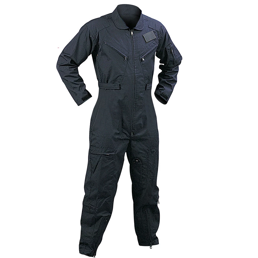 Take off and emulate classic Air Force style with Rothco’s Flightsuits. Four strategically placed zipper closure slash pockets, numerous leg pockets with zipper closure (one with snap) and a zippered utility pocket with pen holder provide ample storage space. Three loop fields on this aviation suit allow for customization through adding flag, or morale patches, while the left chest showcases a hook and loop name badge holder, while a 2-way front zipper closure helps fastens your suit shut and remove efficiently. The adjustable waist and wrist cuff tabs with hook and loop closure on this pilot flight suit help to maintain the perfect fit. This tactical jumpsuit is constructed with a cotton/poly material for a winning combination of comfort and durability, and the aviation suit’s underarm holes or vents allow for increased breathability. This military flightsuit features a collar, keeping with the standard and recognizable flight suit appearance while, reinforced shoulders on this coverall prevent wear. Pleated leg zippers are incorporated onto the front-bottom of this flying suit’s pant leg.Â