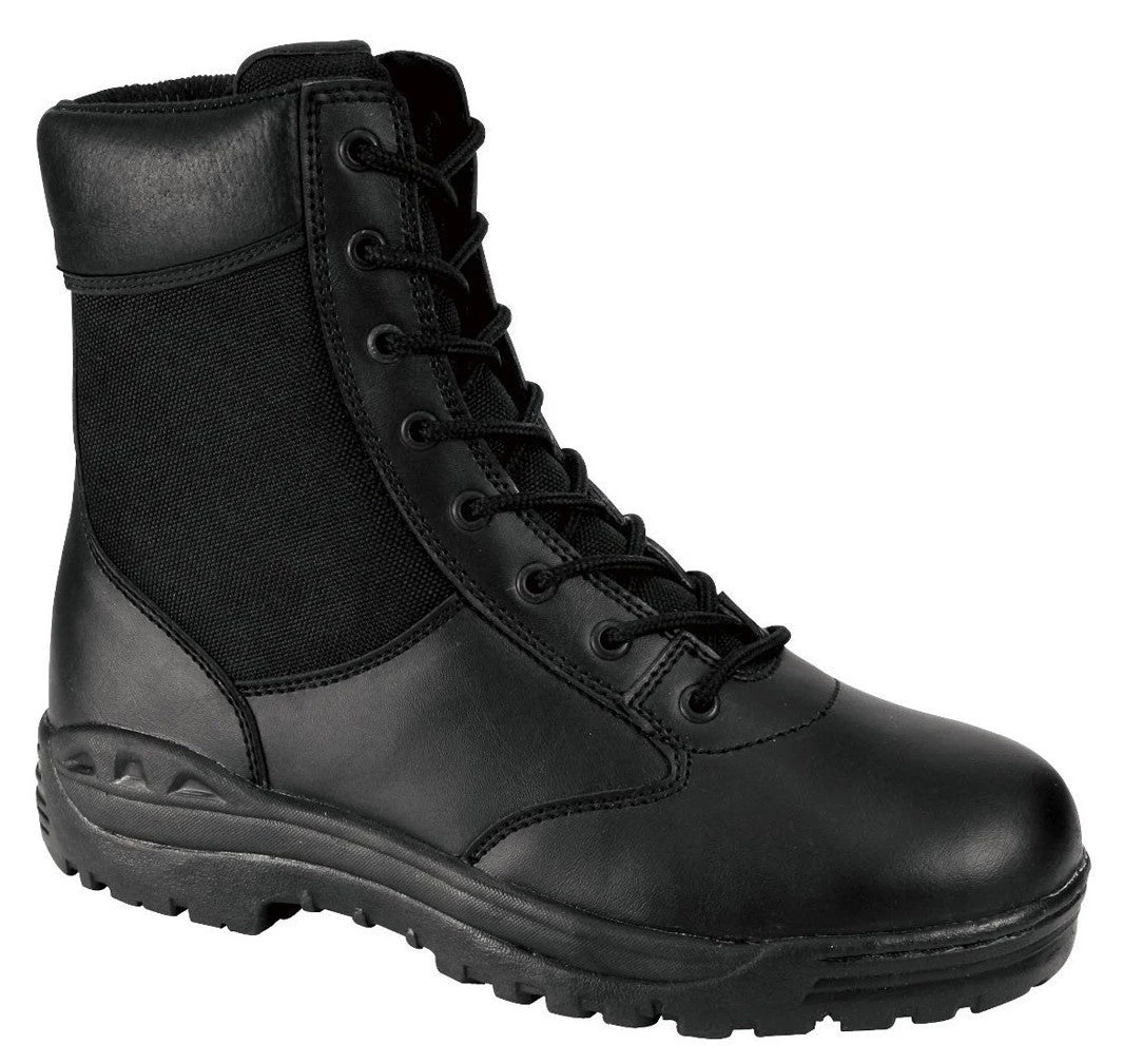 Rothco’s 8″ Forced Entry Security Boot is designed for all-day comfort and support for the security professional. The security boot is constructed of a leather and denier nylon upper with a pigskin collar for durability. A moisture-wicking lining keeps you cool and dry all day long, while the steel shank offers support. The tactical style boot also features a front stitched sole and slip-resistant cup sole for maximum grip and rust-proof hardware for long-lasting wear.