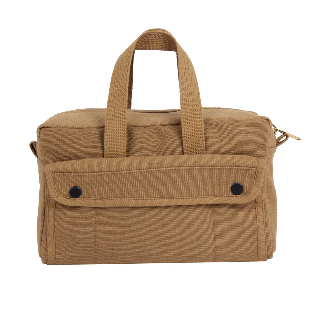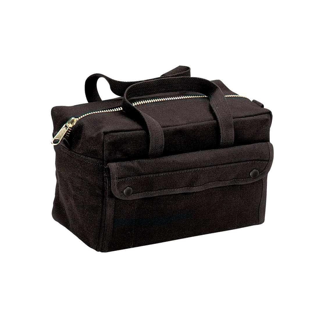 Rothco G.I. Type Mechanics Tool Bag features a heavyweight cotton canvas with 2 outside snap pockets, 8 inside tool organizer pockets and a durable brass zipper. The mechanics tool bag measures approximately 11″ x 7″ x 6″.