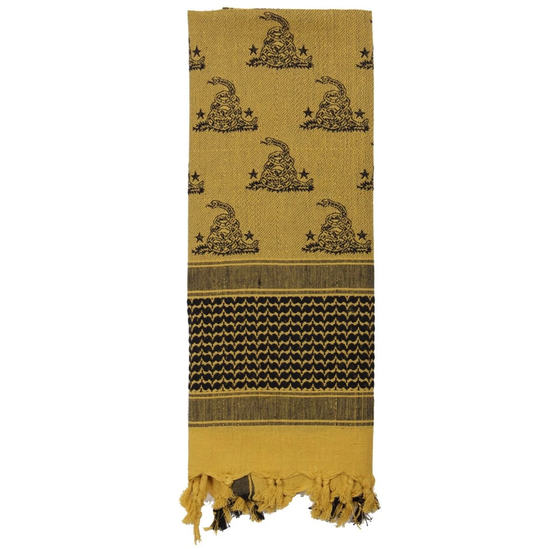 A new spin on a classic, Rothco Snake Shemagh Tactical Desert Scarf features a scarf with a black snake Gadsden design . Shemaghs are a traditional desert head-wear that are designed to protect the head and neck from sun and sand. These tactical scarves are worn by military personnel worldwide and can also be worn as a fashion accessory.