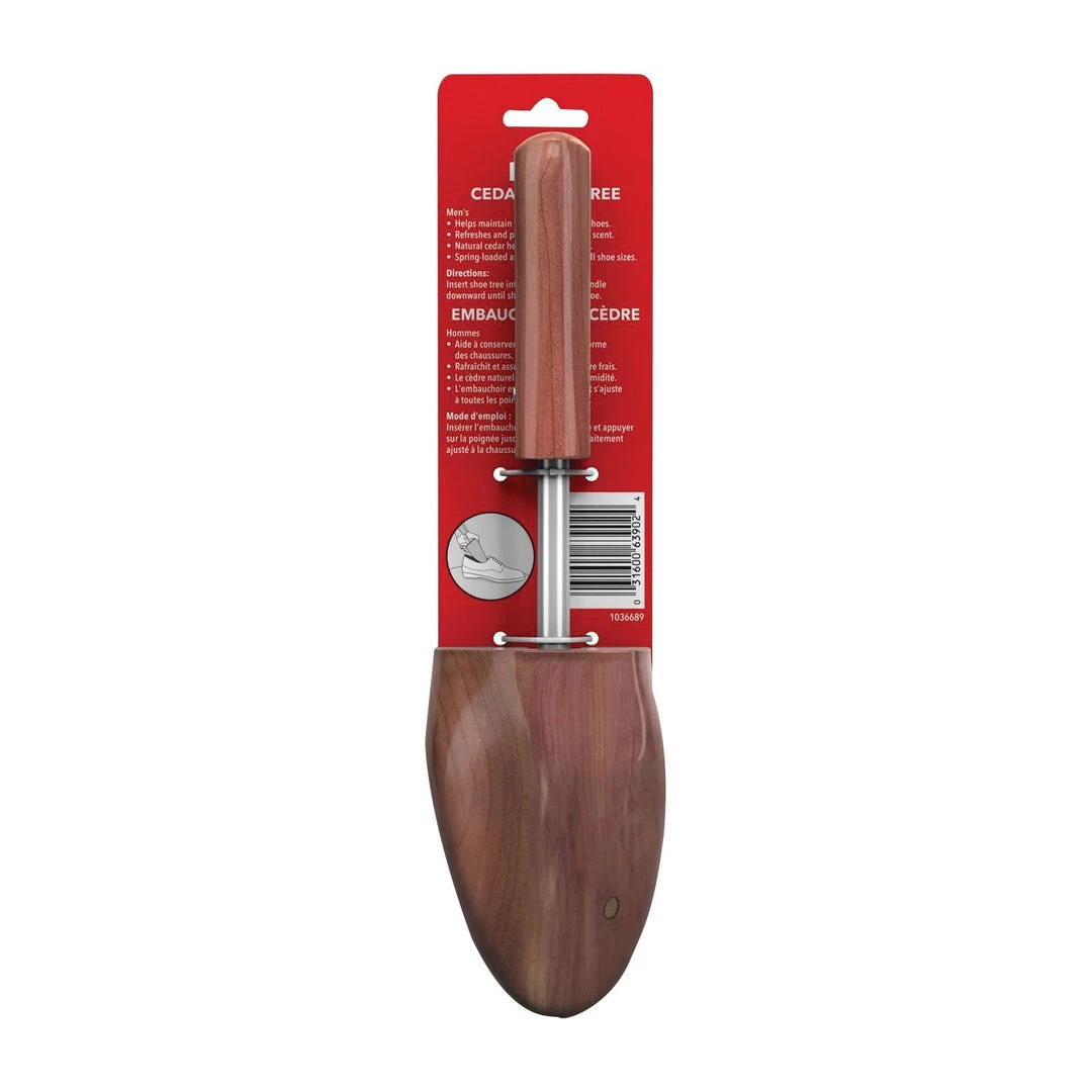 Keep your shoes in shape with Kiwi’s Cedar Shoe Tree – made with natural cedar to provide freshness by absorbing odor.  Spring-Loaded and adjustable to fit most shoe sizes.