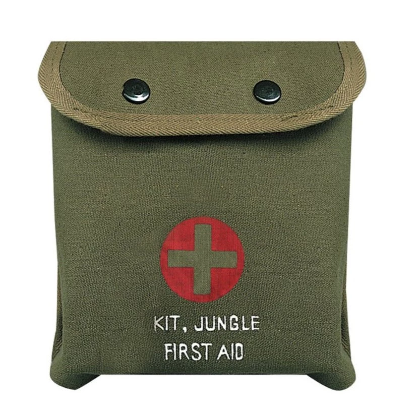 Rothco’s M-1 Jungle First Aid Kit Pouch comes fully equipped with essential first aid items. The First Aid Kit Pouch is constructed with durable canvas material and is made portable with belt clips. The double buttons on the front of the pouch allows for a secure closure. This compact first aid kit measure 5 ¼” wide and 5 ½” high.