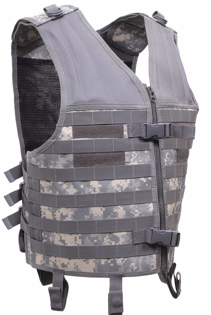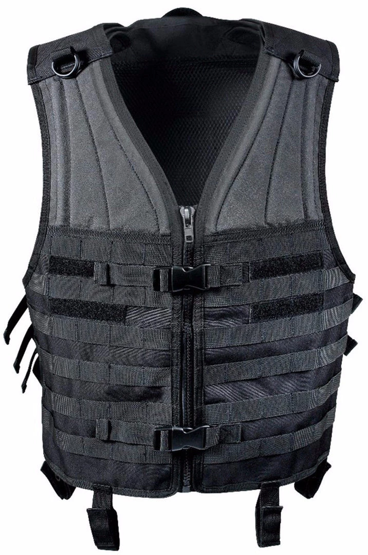 Rothco’s MOLLE Modular Vest features MOLLE compatible webbing for attaching modular pouches and tactical accessories, in addition the vest features two inner mesh zippered utility pockets also great for accessories and personal items. The tactical vest has a zippered front and two quick release buckles for added security and stability, padded recoil shoulders, emergency drag handle and hanging loops for attaching pistol or duty belts.