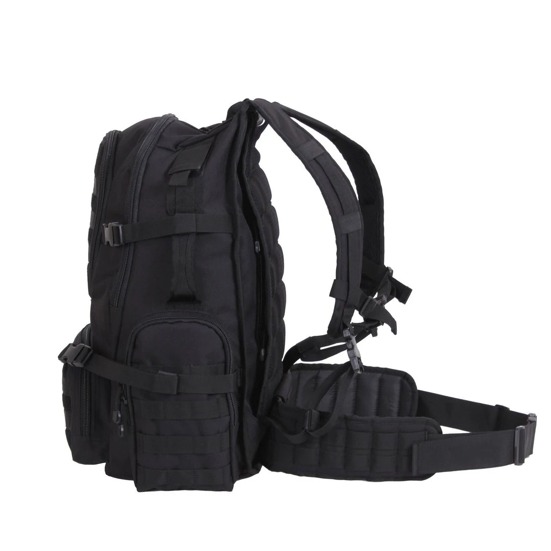 Rothco’s Multi-Chamber MOLLE Assault Pack takes compartmentalizing to the next level with seven zippered compartments including a soft lined tech device pocket with pass-through port and hidden laptop pocket that can comfortably house a 17-inch laptop. The military backpack includes an interior pocket for a hydration bladder and multiple hydration hose access points to help you stay hydrated without having to take off the assault pack. Attach your other MOLLE compatible gear with the various MOLLE loops offered on this tactical backpack. The MOLLE assault pack can be comfortably worn to each individual’s desires with the adjustable and removable padded shoulder straps and waist strap. Carry handles on the top and sides offer an alternative way to carry the military assault pack. Whether you are a traveler, outdoorsmen, or just somebody looking for a versatile backpack, Rothco’s Multi-Chamber Assault Pack is the optimal backpack to store everything you need for your next venture.