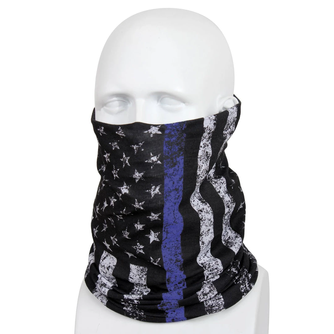 Rothco’s Thin Blue Line Multi-Use Tactical Wrap is an incredibly versatile piece of headwear that has the ability to be worn as a bandana, neck gaiter, dust screen, balaclava, scarf, and/or hat. Made of a breathable, super soft high-performance polyester material, the tactical wrap is wind resistant and wicks away moisture; keeping you cool, dry and protected from the elements. Featuring a black and white U.S. flag design with a thin blue line on the center stripe, these multi-use bandanas show support for police and law enforcement officials.