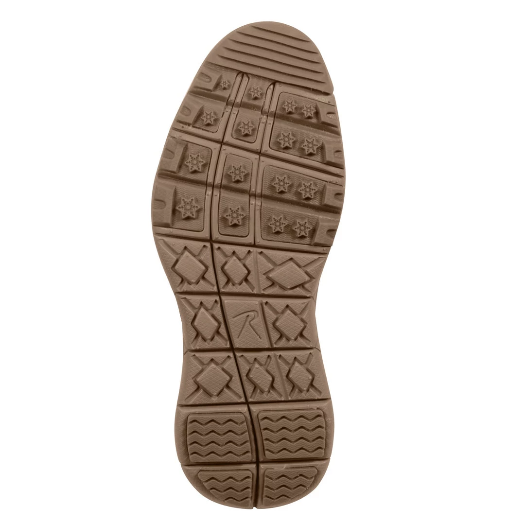 Rothco’s V-Max Lightweight Tactical Boot is the optimal choice for an all-purpose military-style boot. Designed with the comfort and support of a running shoe, the tactical boots feature a rubber and EVA outsole for improved traction while you are on the move. The iron eyelet lace system will keep your lightweight military boots tightly secured. Constructed with a nylon/PU upper and leather body, the sneaker boots are built for long-lasting durability (Desert Sand has a suede body).