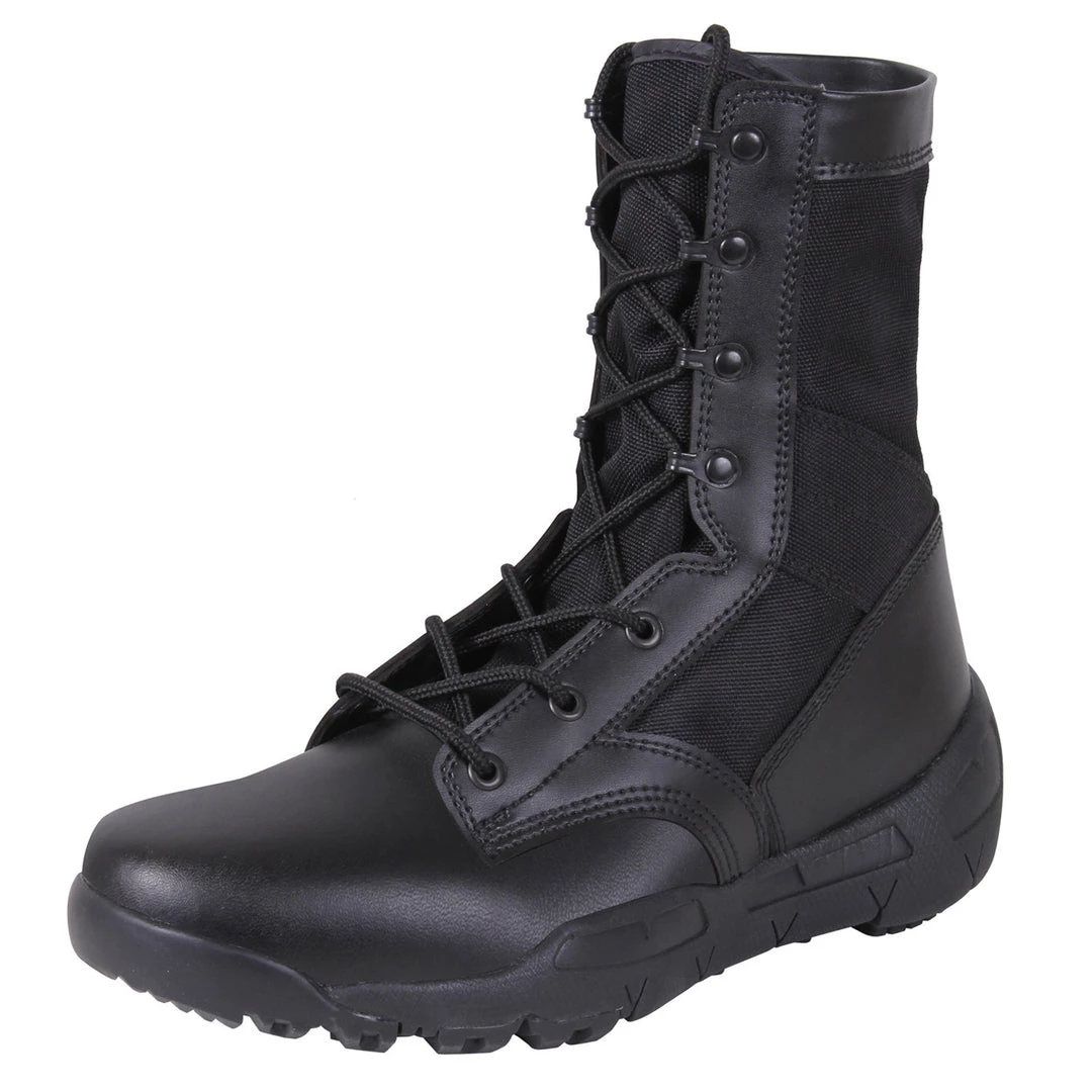 Rothco’s V-Max Lightweight Tactical Boot was designed to give you running shoe comfort in a military boot. The lightweight boot is made with a durable nylon/suede leather upper and EVA & rubber outsole. For added comfort and support the tactical boot features a padded suede collar removable cushion sole and two mesh side vents. Rothco carries a large selection of military and tactical boots.