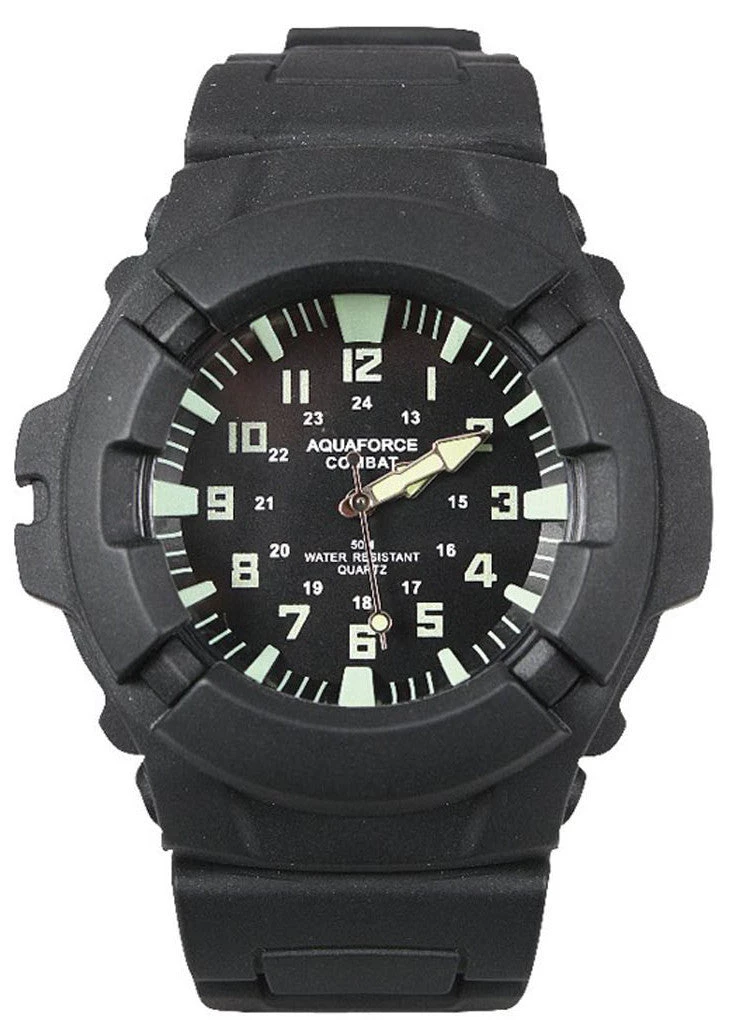 Aquaforce Combat Watch features quartz movement, luminous hands and hour marker and best of all–it’s water resistant to 50 m.