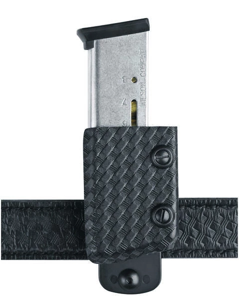 The Model 771 Open Front Magazine Pouch features two tensioning screws on the back side of the holder that allow adjustment on the middle and end of the magazine. Its open front design keeps the index finger from touching the holder during reload, assuring the fastest reload possible. The 771 is adjustable to any angle within a 90° range and the belt loop can also be ordered separately in size: 1.5 in. (38 mm).