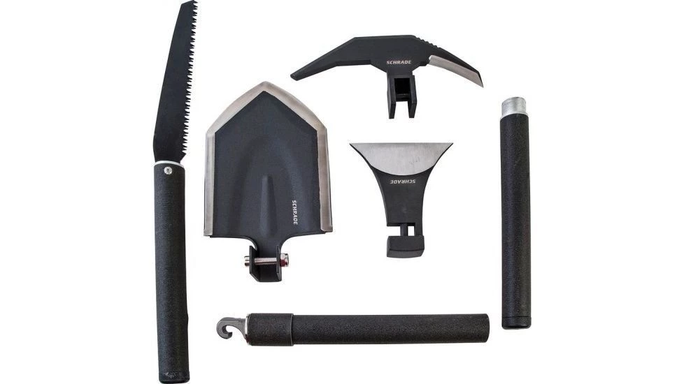 The Schrade SCHEXC Outdoor Kit is a multi-piece tool kit that’s a perfect companion for camping, survival and emergency situations. This six-piece Interchangeable Tool System includes various tool heads which allow the user to quickly change from a shovel, axe and survival pick. The handles are made from aluminum with wrapped textured silicone. It also includes a folding saw. All the components of this all-in-one kit are conveniently stored and transported in a polyester carrying case.