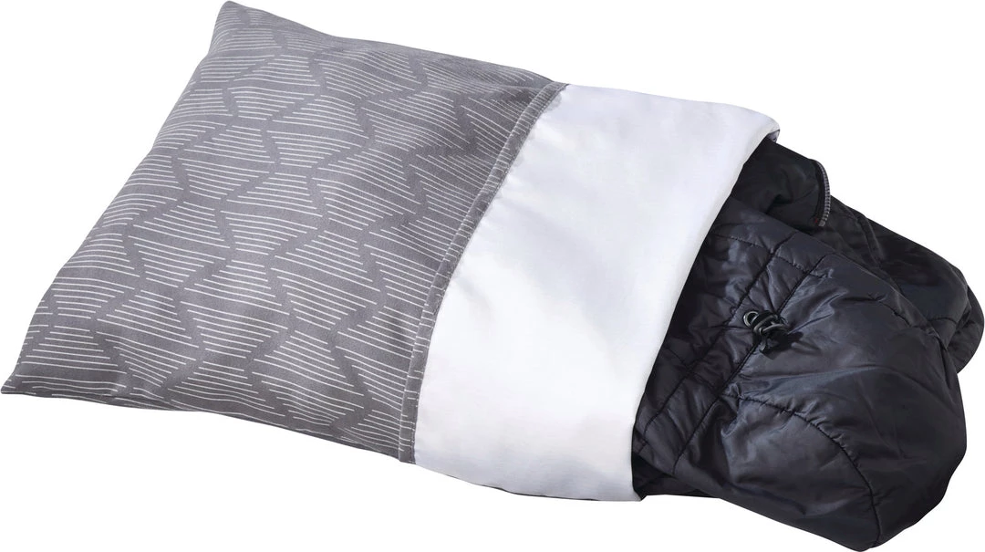 Ultralight and packable, this stuffable pillow folds up small enough to fit in a shirt pocket to save pack space. Stuffed with your soft extras, its brushed polyester exterior makes a luxurious place to lay your head.