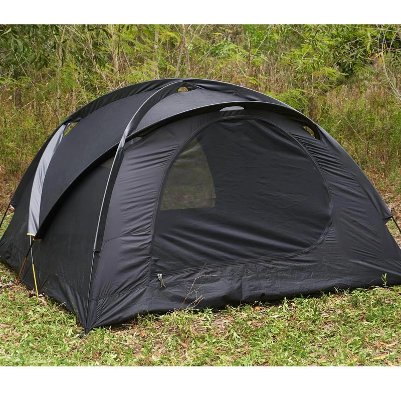 The CAVE by Snugpak is a spacious and functional 4 person tent. Constructed out of the same high end fabrics and components as well as utilizes the DAC Featherlite NSL anodized poles with pressfit connectors that have made our other tents so well-known and respected. Unlike the Scorpion 2, Scorpion 3 and the Bunker, the Cave is not a Fly-First Pitch type Design. Due to its size and design the Inner Tent needs to be set up first and then the fly, if desired. The Cave has two access doors and when the Fly is used, each access door has a vestibule. Note, each vestibule is different. One has a single zip centered, the other has two zips which can create a nice wind blocked entrance if only one portion is used to gain access.