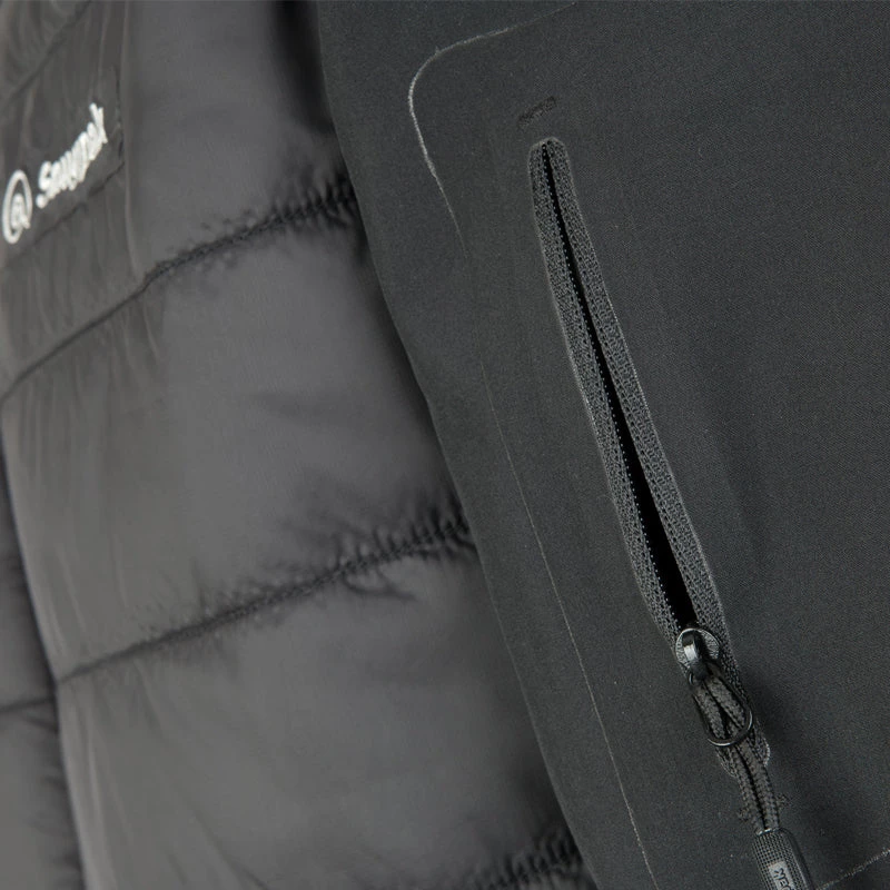 A technical jacket which fuses together soft shell arms and a Softie insulation core. The soft shell sleeves allow you to stay warm without compromising freedom and flexibility of movement. The exclusive Softie insulation in the body of the jacket delivers warmth with a down-like feel without excessive weight and bulk, reinforced on the shoulders for durability.