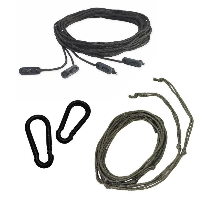 The Snugpak Hammock Accessory Kit Can be used with many different hammocks styles. Includes (4) 13ft Elasticated Cord Guy Ropes, Suspension Attachment System with Tree Protectors and (2) Steel Carabiners.