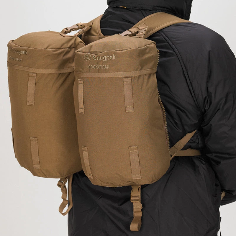 The Snugpak YokeThe Snugpak Yoke attaches to the side pockets of the Rocket Pak and the Bergen Pack to allow the user to create a small and versatile daypack. This creates a great system and can be easily stowed and packed in the Rocket Pak or Bergen Pack with all your other gear and deployed when needed. When the two 915 Cubic Inch (15 Liters) side packets are attached you have a small and agile 1830 Cubic Inch (30 Liters) daypack.