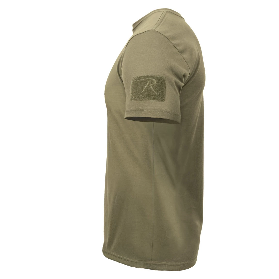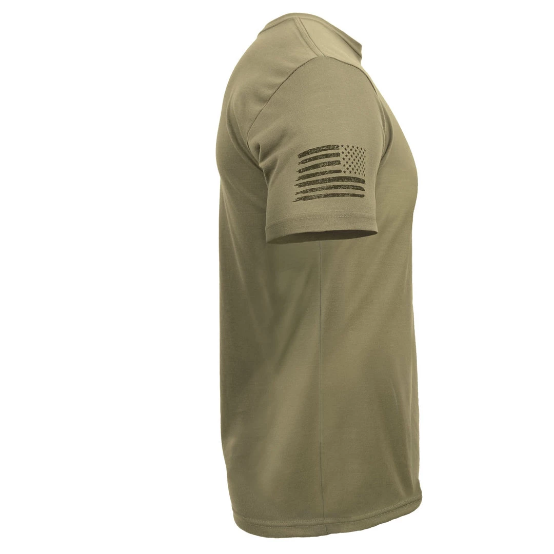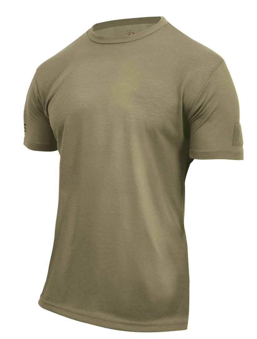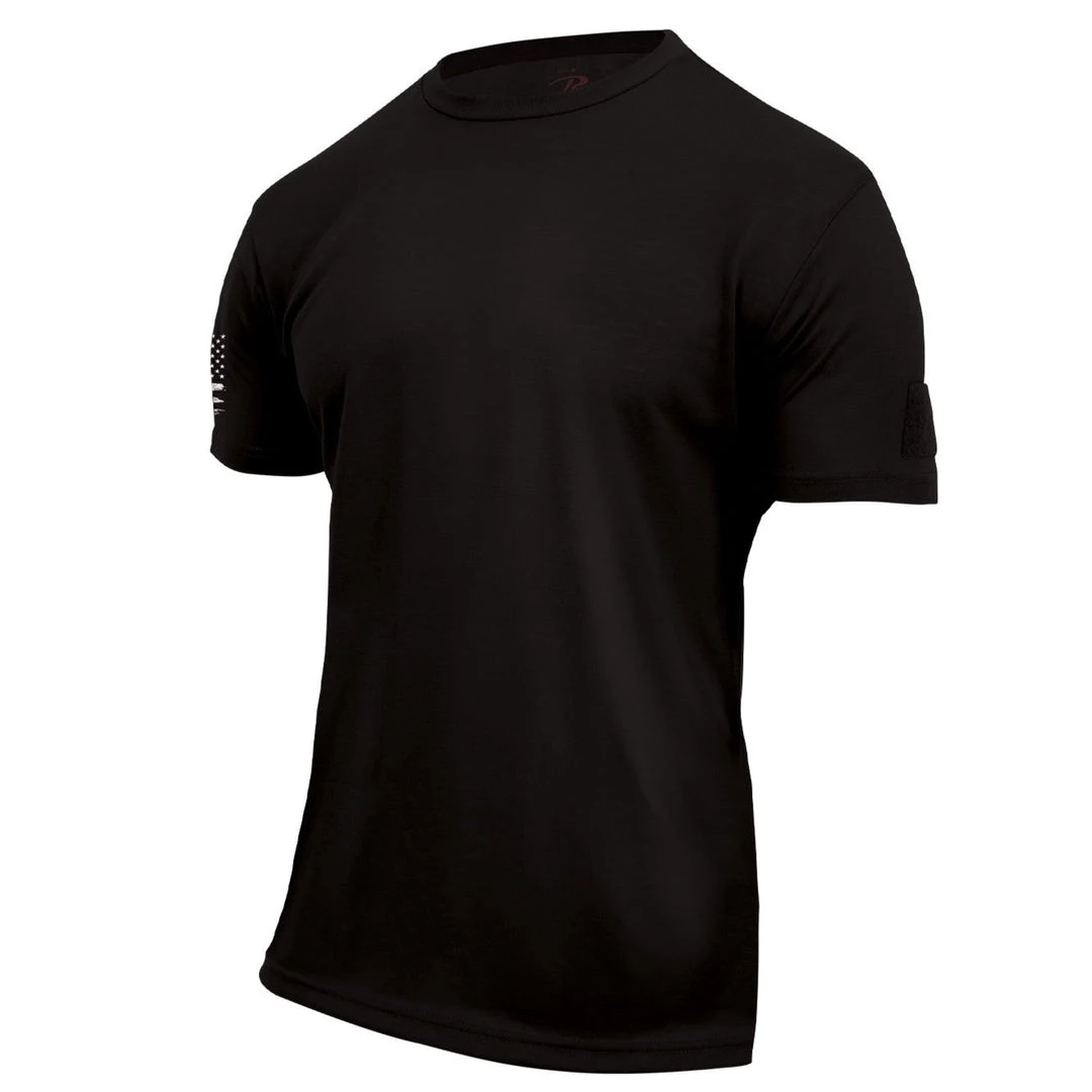 Rothco’s Tactical Athletic Fit T-shirt is moisture wicking and features a loop field on the left sleeve for adding moral patches. This tactical shirt features a 3.5″ x 2.36″ loop field on the wearers left sleeve and a reverse distressed US Flag on the right sleeve. Rothco’s Tactical T-Shirt has a slightly smaller chest, smaller armholes and smaller sleeve opening for a more athletic fit and style. Tagless label, inset collar and 100% cotton ring spun material offers maximum comfort all day long.