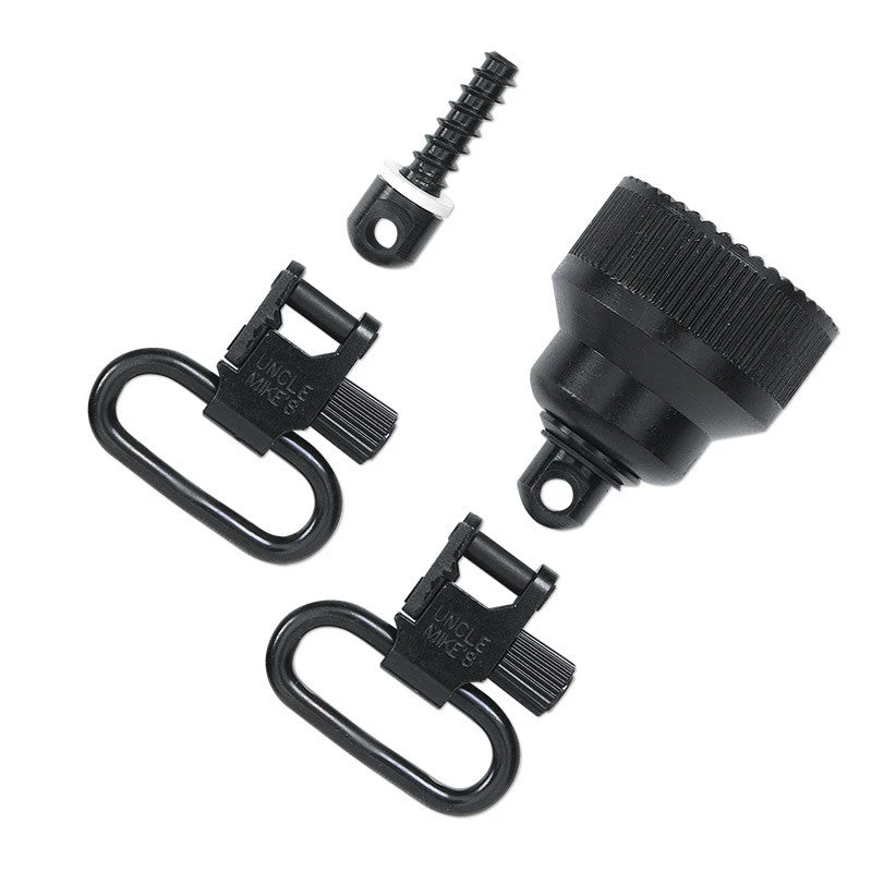 Includes replacement magazine cap with swivel base, 3/4″ wood screw butt-stock swivel base and two QD Super Swivels.