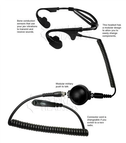 Incredible is the response on our new lightweight adjustible bone conduction headset with military style PTT that can be worn under a gas mask. The perfect solution for those high noise environments. Bone conduction technology transmits and receives audio directly from vocal vibrations in the skull. No boom mic necessary. The speakers do not block the user’s ears so you maintain your peripheral hearing. Convenient modular design allows you to switch out components with other Code Red Headsets modular products. The BZ-M7 works with the Motorola APX and XPR series radios. **This adapter will not fit the Motorola APX 6000/7000 XE Series Radios**