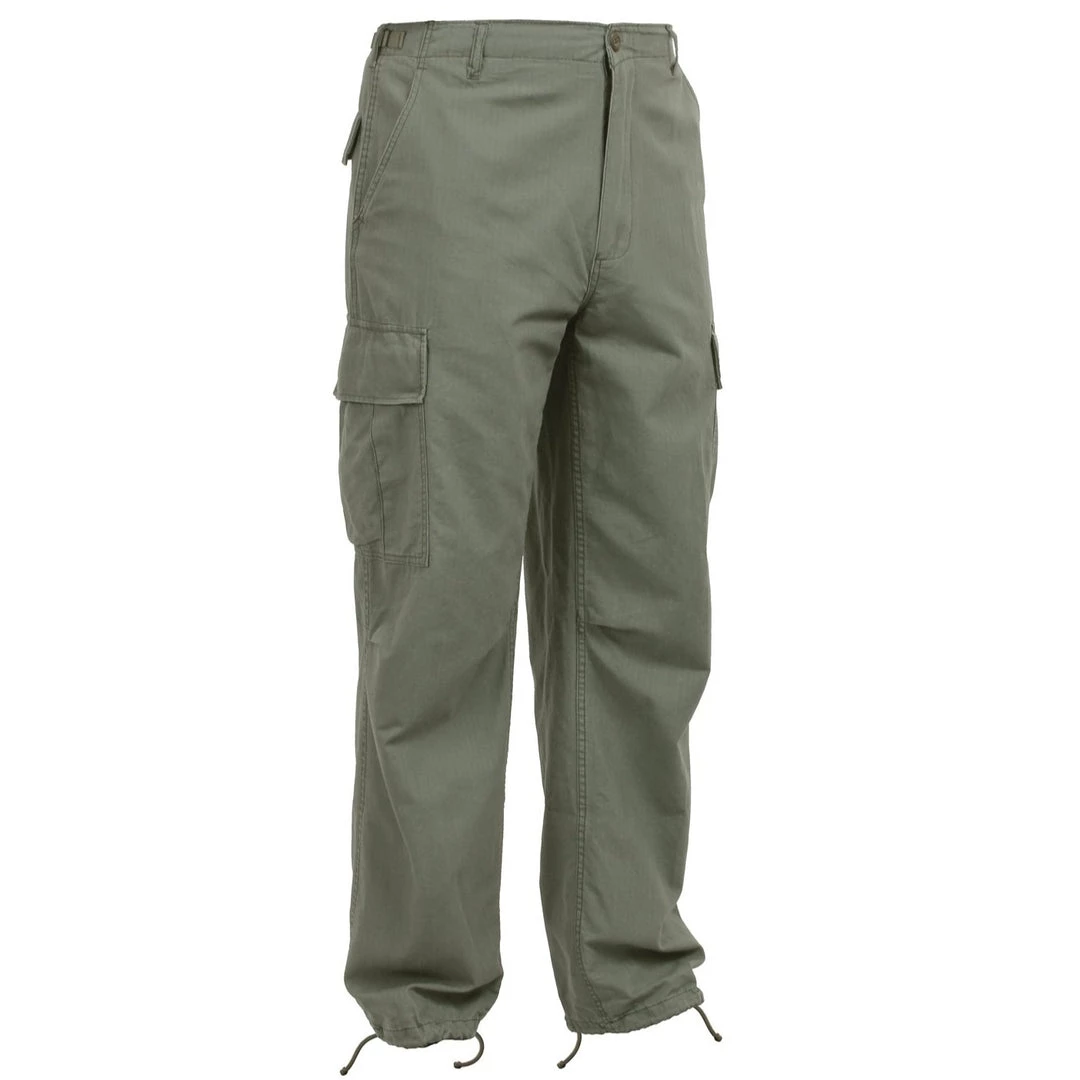 Rothco’s Vintage Vietnam Era 6 Pocket Fatigue Pants are 100% Cotton Rip-Stop and feature slant pockets, zipper fly and are washed for that authentic surplus look and feel.