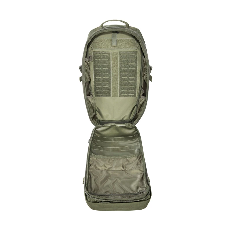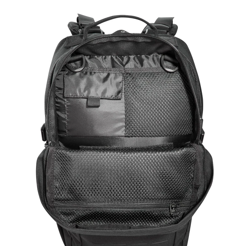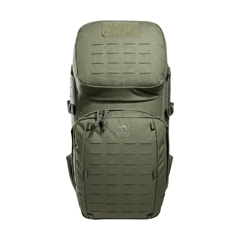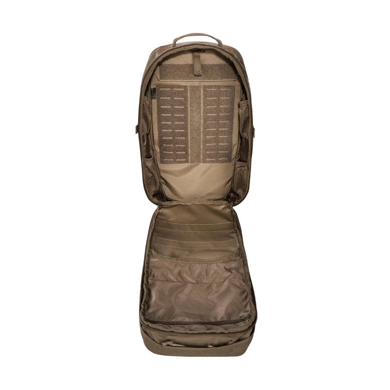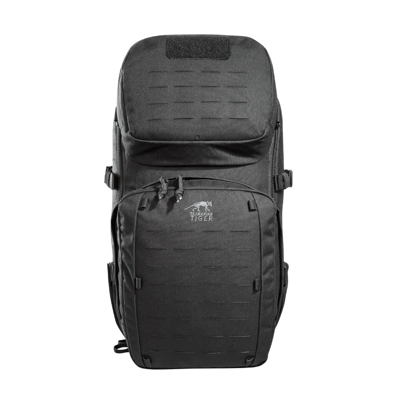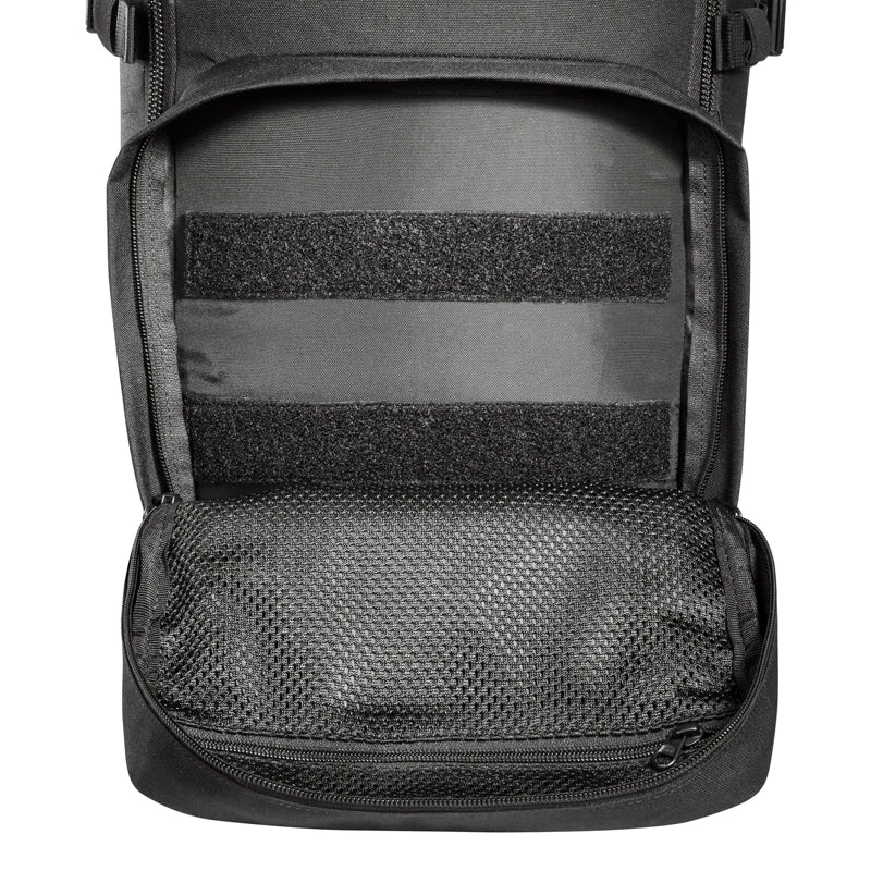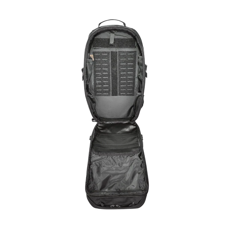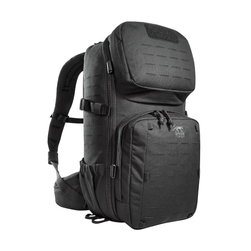 Universal small combat backpack with two attachable pockets and elastic side pockets. Based on the predecessor model, the TT Modular Combat Pack has a clean new look, optimized features, and MOLLE hook-and-loop lining in the main compartment for customized modular add-ons. Laser-cut MOLLE on the front and sides mean you can combine it with other gear. With a main compartment that opens completely and the special zipper guides, it’s possible to use the pack as a top loader. The shoulder straps can be adjusted in length in order to wear the backpack over vests.