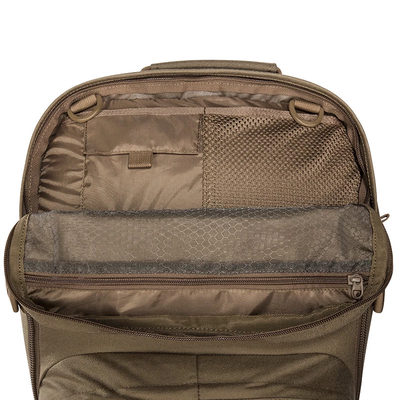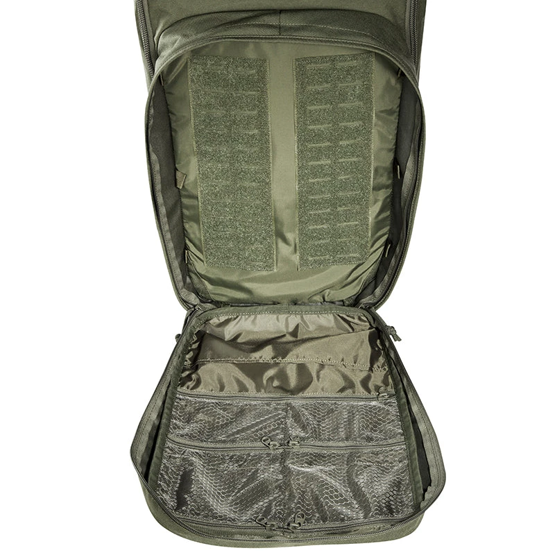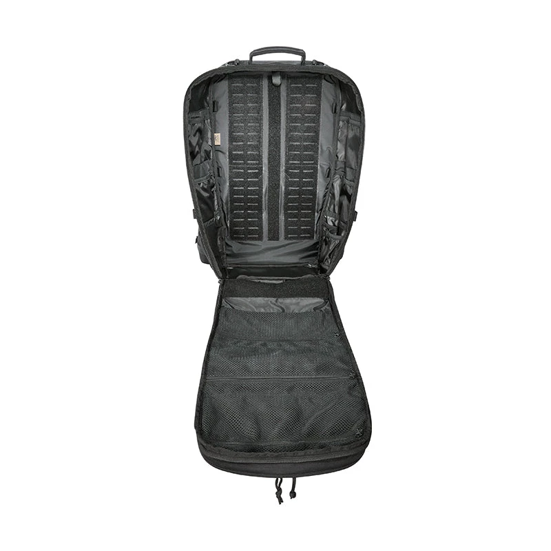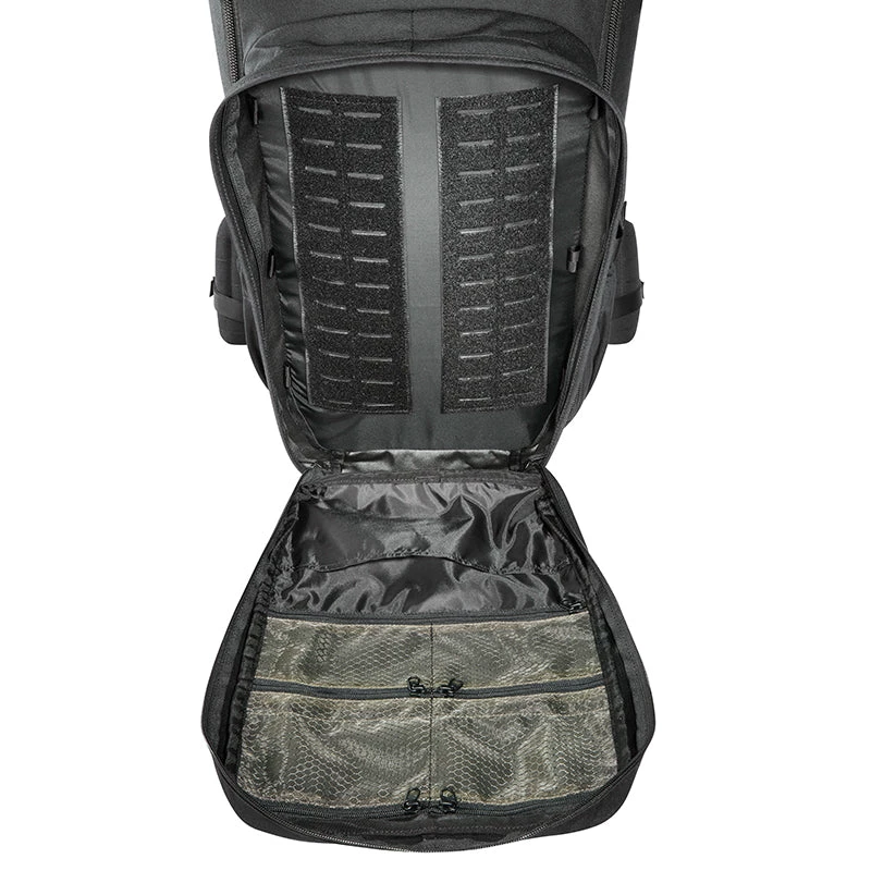 The TT Modular Trooper Pack is a military/tactical backpack designed with TT’s V2 Plus carrying system. It has two outer pockets and laser-cut MOLLE on the front and sides that allow you to customize it by adding pouches or extra gear. With an optimized design and modular functional features, the main compartment opens completely and the special zipper guides make it possible to use the pack as a top loader. The back panels of the front and main compartments feature a MOLLE hook-and-loop for customized loading. Both front pockets have zipper mesh pouches to organize your gear. The backpack has an integrated rain cover and a removable hip belt that can also be used as a Warrior Belt. The back panel can be adjusted to different back lengths.