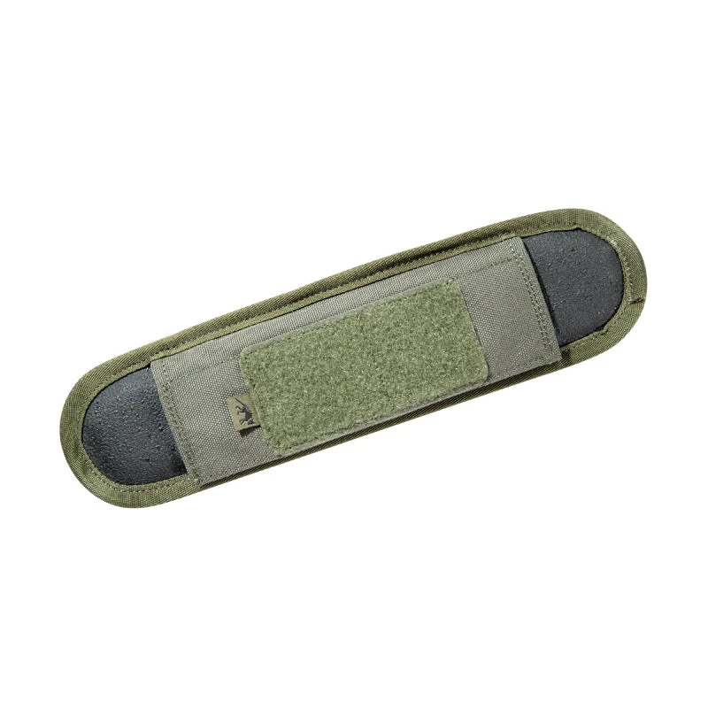 Shoulder pad to add to shoulder straps to make carrying heavy loads easier. Absorbs the load transfer on the shoulder and fits on a strap up to up to 2in/5cm wide.