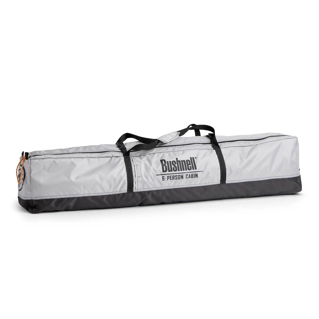 The Bushnell 9 Person Instant Cabin Tent features the latest in tent technology. Instant Setup Technology allows your camp to be set up in 60 seconds so you can spend more time in the outdoors. Water repellent fabric and fully taped waterproof seams seal-off your tent from the rain while strong frame construction and heavy duty tie-downs stand tough against the wind.