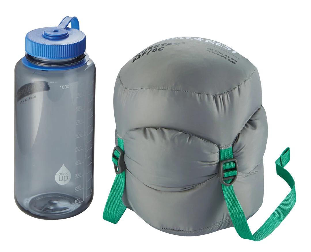 As the lightest bag in our award-winning Questar line, this bag makes the perfect partner for experiencing the joy of the backcountry. We’ve loaded this bag with the comfort features that Therm-a-Rest bags are known for. Our SynergyLinkâ„¢ Connectors integrate the bag with your sleeping pad while allowing our Zoned Insulation to keep fill where you need it most. The fit of the bag has been perfected in our onsite cold chamber to create our W.A.R.M. fit and allowing room for multiple sleep positions without compromising thermal efficiency. Stuffed with water-resistant 650 fill Nikwax Hydrophobic Down certified by the Responsible Down Standard, the three-season Questar is ready for your next backcountry adventure. The Questar is offered in three sizes, and designed to fit both men and women. Compression sack and storage sack included.