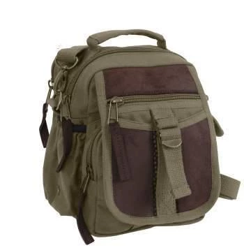 Rothco’s Canvas Travel Shoulder Bag is the perfect bag for all types of travel. The canvas bag features 2 exterior zippered compartments, 2 side pockets, a front flap zippered pocket making gear easy to store and access. A convenient removable shoulder strap and top carry handle add to the bags versatility. There’s even a belt loop on the back for an extra carrying option. Leather accents and brass hardware complete the military look to our canvas bag. The Rothco Canvas Travel Shoulder Bag measures 8.25″ x 6″ x 7″.