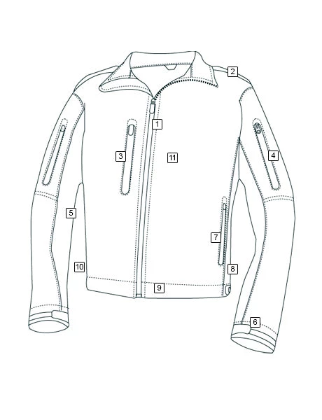 - Right chest pocket, 2-sleeve pockets and 2-waist pockets for storage