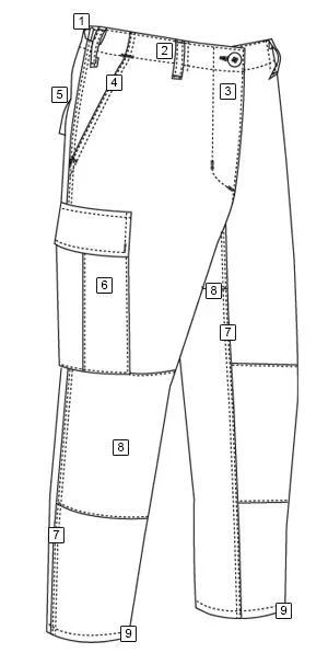 - Belt loops with 2¼” wide opening secured with 2-bartacks