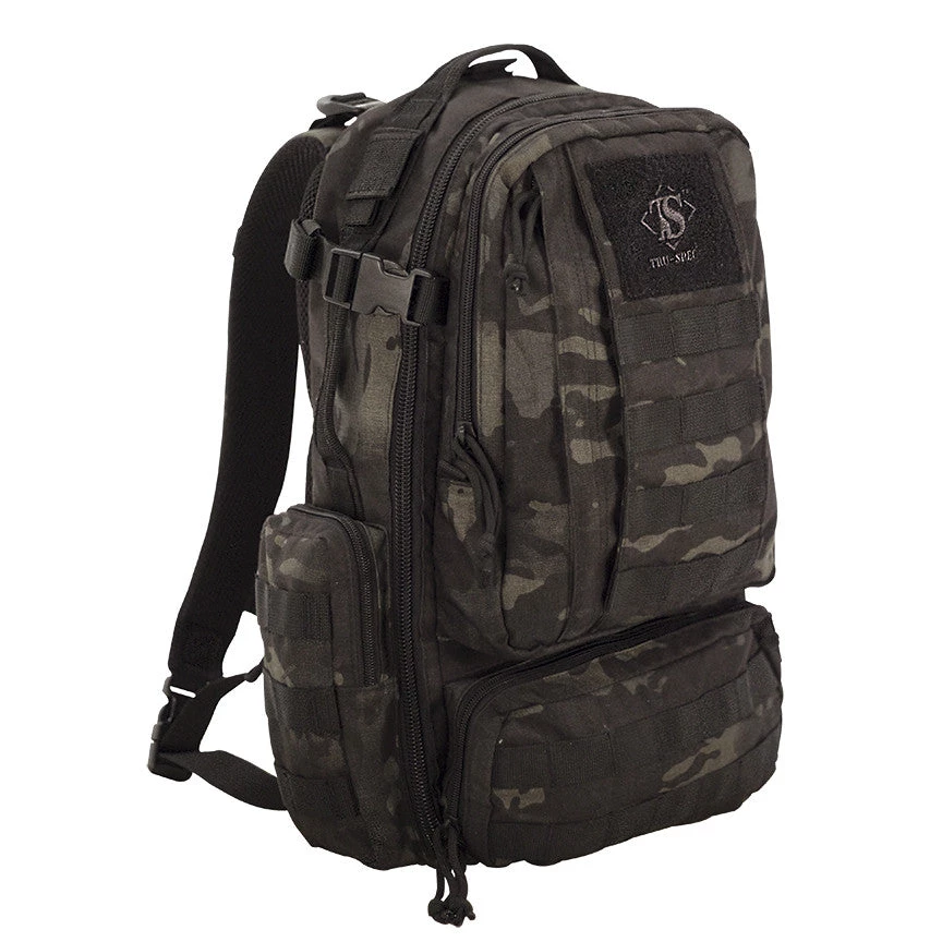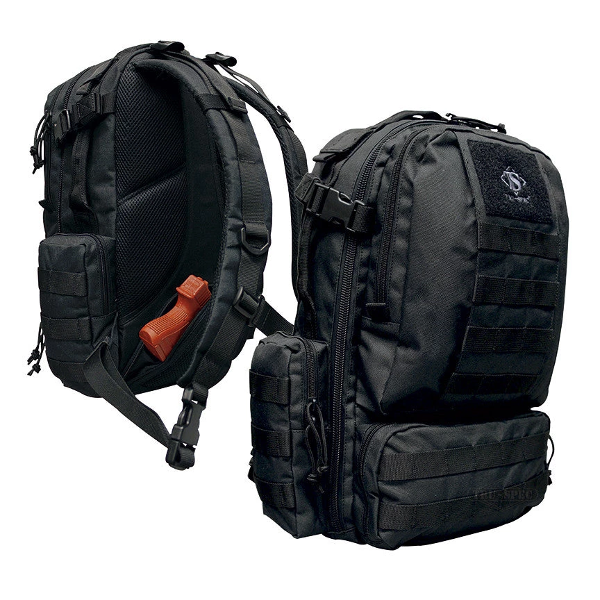 The perfect daily carry tactical backpack. Covered in exterior universal strapping for adding pouches and sporting multiple built-in zippered compartments and pouches, this pack can carry it all. Includes a hidden pocket in the lower back pad that is perfect for concealing your weapon, documents or other valuables.;