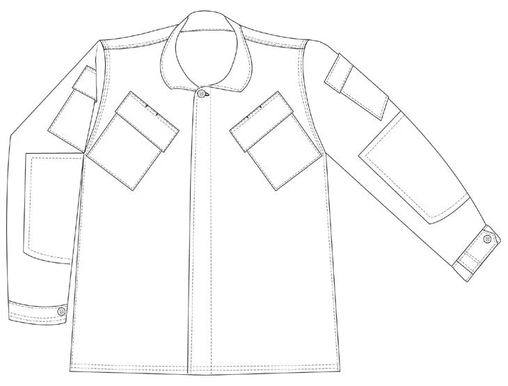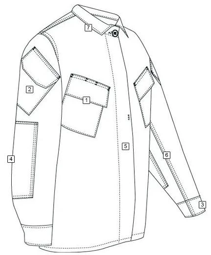 - 2-slanted chest pockets with hook & loop closures & pencil pocket openings