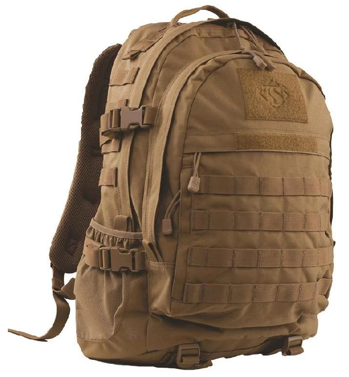 Large enough to carry personal gear, extra ammo and all manners of tactical gear with dozens of compartments to store all the gear you’ll need for a three day excursion. The side compression straps compress the bag down when not fully loaded and can hold longer items, like M4s, aiming stakes, or tripods securely. Covered with universal straps for adding additional pouches allowing the user to customize the bag to the use they require.