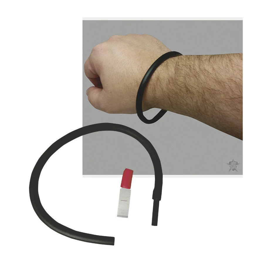 The Pyro-Band is a safe, convenient and covert way to always have the means to create fire. Worn as a wristband, the integral ferro rod is not only the fire source, but also serves as the band’s clasp/connector. Rapidly scraping the rod with a sharp edge, such as a knife blade, will send out a shower of sparks that can ignite appropriate tinder to light a fire. A great way to always have a basic piece of survival gear close at hand.