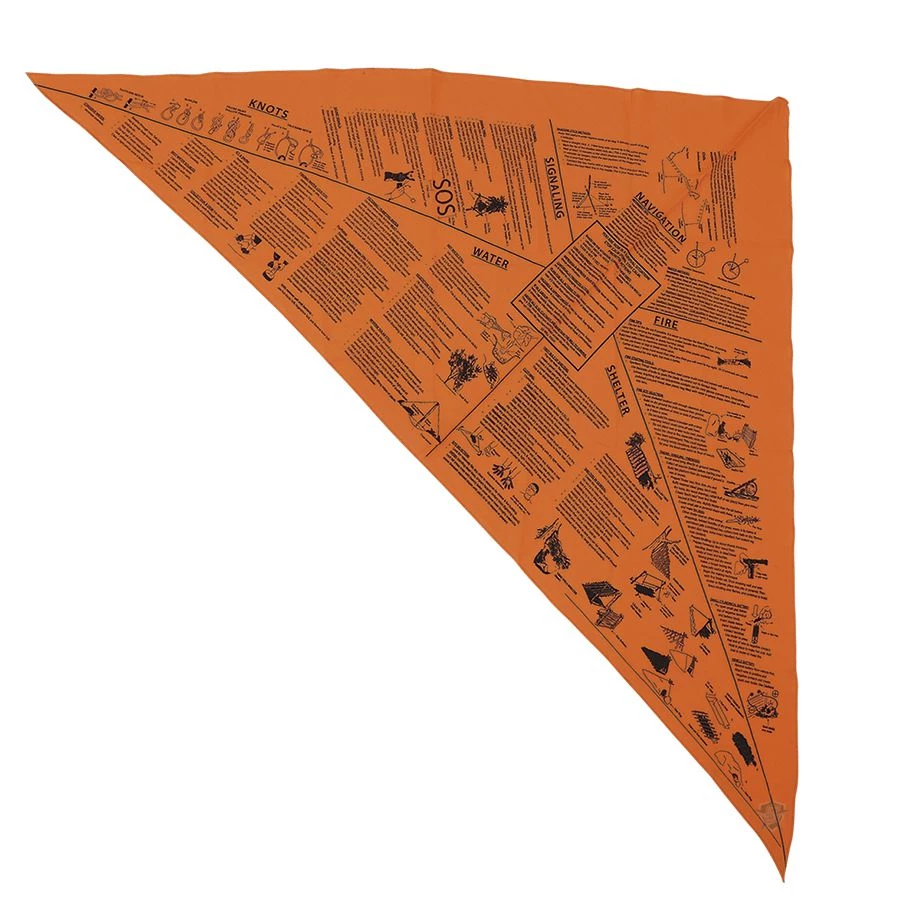 A multi-functional head/face wrap for prevention of sunburn on head/neck areas as well as using it for a splint, sling or tourniquet and much more. Easy to use survival information printed directly on the material. A must have for campers, hikers and survivalists.