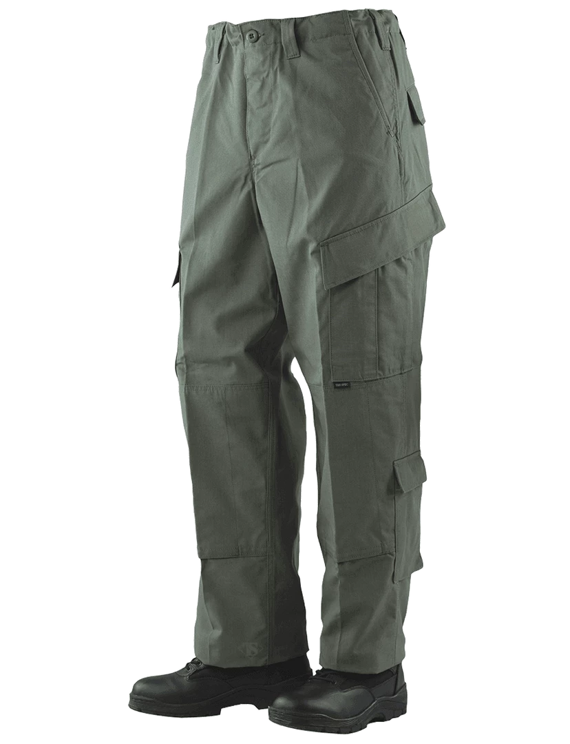 The TRU-SPEC TRU button fly pant conforms to Mil-Spec and has a one-piece waistband with a drawstring inserted for adjustable waist with a button and buttonhole enclosure. They feature a 1″ wide belt loops with 2-1/4″ belt loop openings with 2 front slashed pockets, 2 snag-proof hook and loop hip and cargo pockets as well as 2 lower leg pockets. These uniform pants also have reinforced external knee pockets for knee pad inserts and reinforced seats & knees with draw cords at the ankles. Not to forget seat seams, side seams and inseams are of double needle felled construction.