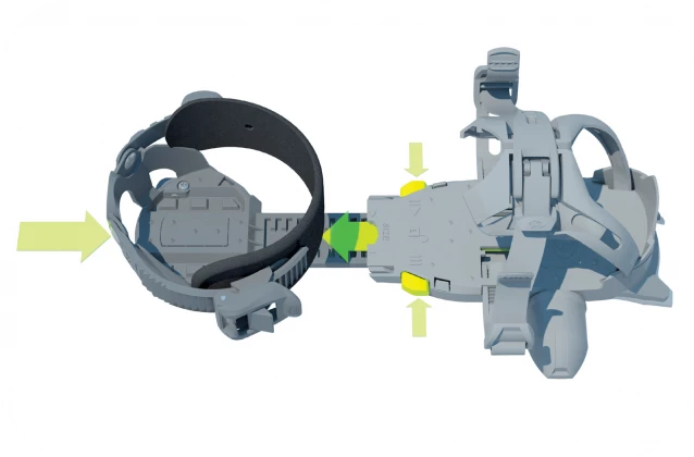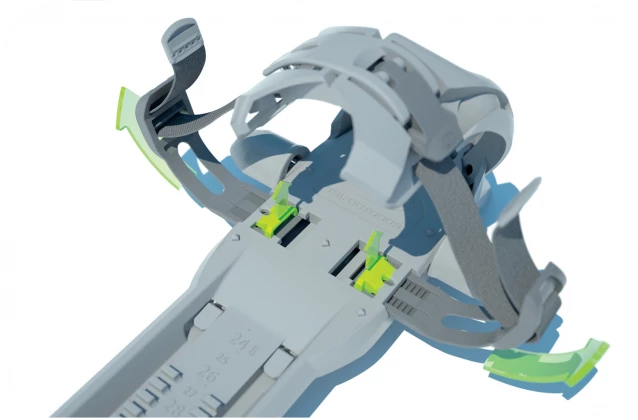 - Tightening through a ratchet system for a secure and fast fit.