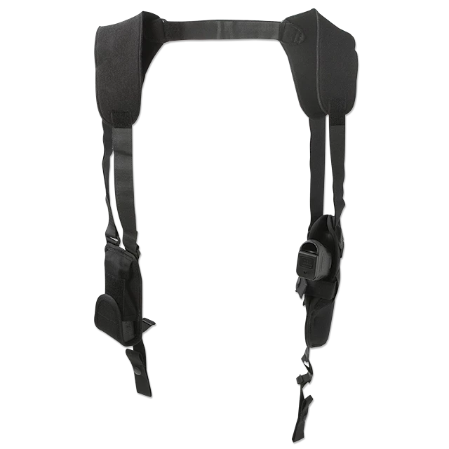- Off-side tie-down has single mag case for autos or single speedloader case for revolvers
