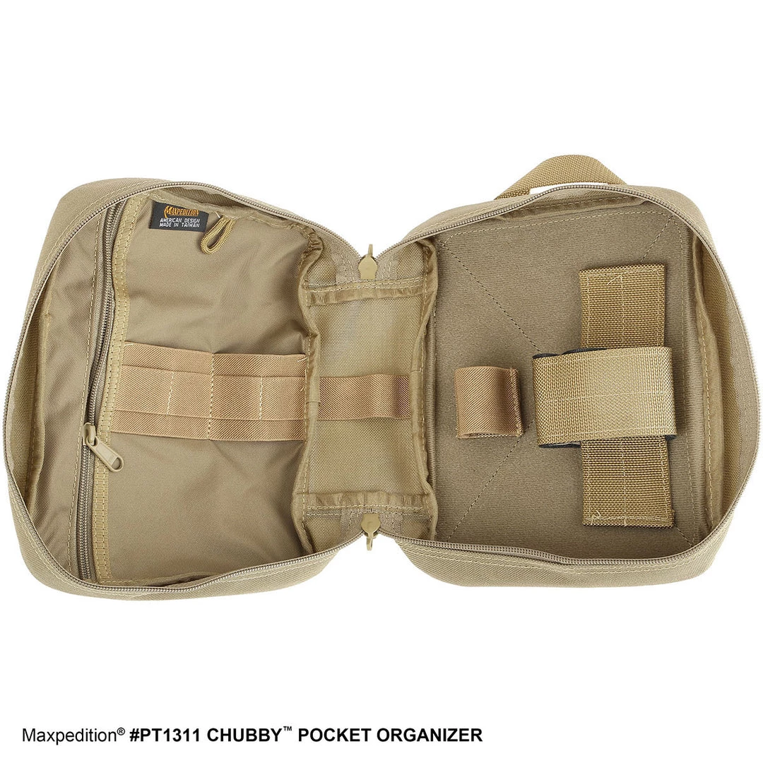 Largest member of our Pocket Organizer series, the Chubby includes a universal holster and mag holder inserts.  If it’s hard to find, it’s hard to use. Kill the clutter and keep it together with Maxpedition Pocket Organizers: portable multi-tool managers that can be packed, carried or easily secured to the PALS webbing exterior of your Maxpedition bag. Instantly recognizable by their large front mesh pockets and oversized carry handles, these practical utility packs come in 5 different sizes with multiple solutions to help keep you organized.