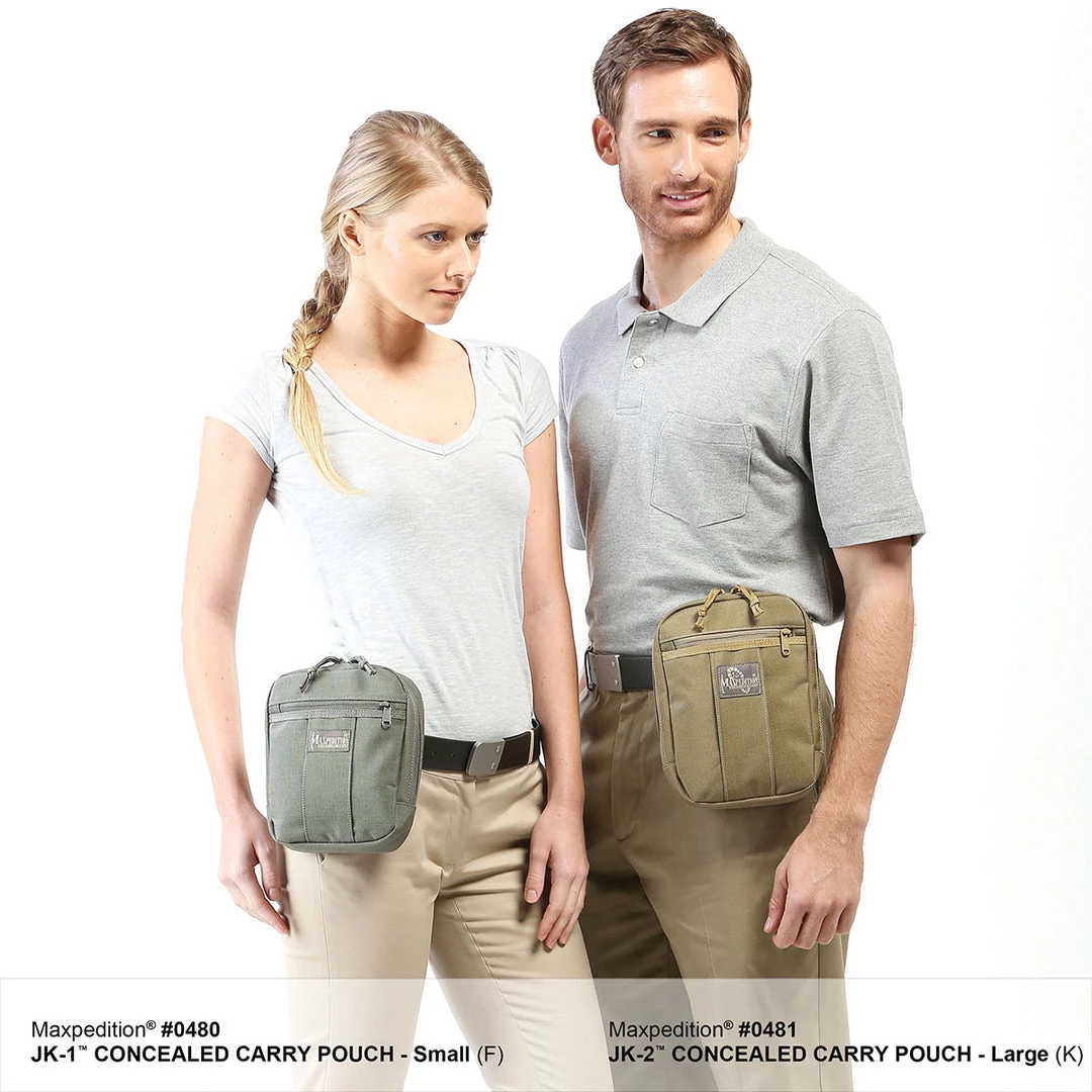 The #0480 JK-1 Concealed Carry Pouch is an excellent, discreet alternative to a belt holster. It will fit a small to medium frame handgun plus a single extra magazine, retained and positioned with included hook and loop accessories. Features fully ambidextrous operation with a quick opening pull tab. Attaches to your belt or to PALS via 3″ TacTie Attachment Straps. It will fit a small to medium frame handgun plus a single extra magazine, retained and positioned with included hook and loop accessories. Features fully ambidextrous operation with a quick opening pull tab. Attaches to your belt or to PALS via 3″ TacTie Attachment Straps.