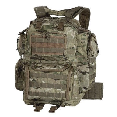 The Voodoo Tactical The Improved Matrix Pack is the perfect size pack with padded comfort back and adjustable padded shoulder harness with attached electronic instrument pouches. Multiple side and upper and lower rear pockets, all with reversed coil zippers to keep the sand out. Lots of universal webbing for various pouch attachments, integrated handles and extra straps and buckles to attach to your drag bag. Hook-n-loop I.D. patch on front, advanced harness retention system for maximum load carry and enhanced removable padded waist belt with universal straps.