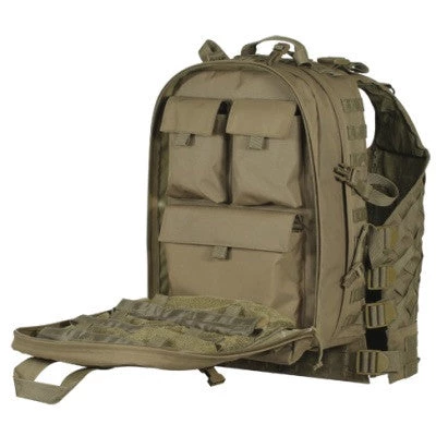 Voodoo’s Vanguard Vestpack is a combination of the best of both tactical worlds…a tactical vest with an attached tactical backpack for combined combat readiness and long term OPS. The vest is equipped with their new patented advanced lattice weave system that allows the wearer to mount accessory pouches either vertically or diagonally.